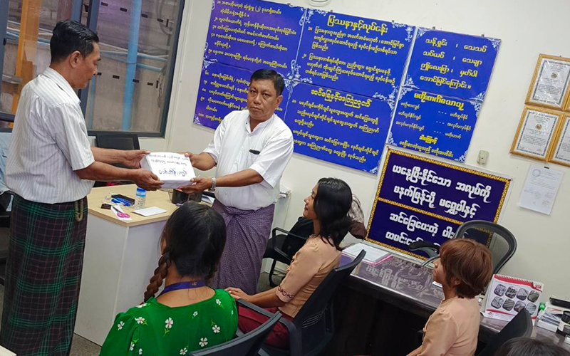 ကုမ္ပဏီမှ ဝန်ထမ်း သားနှင့်သမီး ပညာရည်ထူးချွန်ဆုရ၍ ထောက်ပံ့ကြေး( ၁၀၀,၀၀၀ )ကျပ် ပေးသည့် မှတ်တမ်းဓာတ်ပုံများ